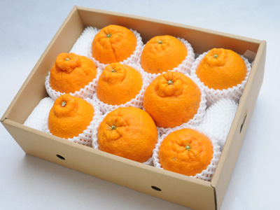 花の満開日から300日以上樹上に成らすことで、増糖と減酸が進みまろやかな風味をもった完熟に仕上がます。是非一度食べてほしい、山喜自慢のこだわり『完熟不知火』です。